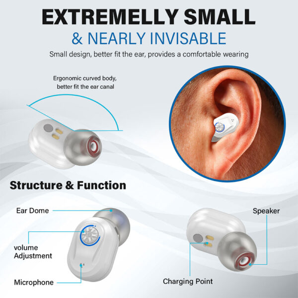 - Diskret og komfortabel: Kompakt ITE-design passer problemfrit ind i dit daglige liv.